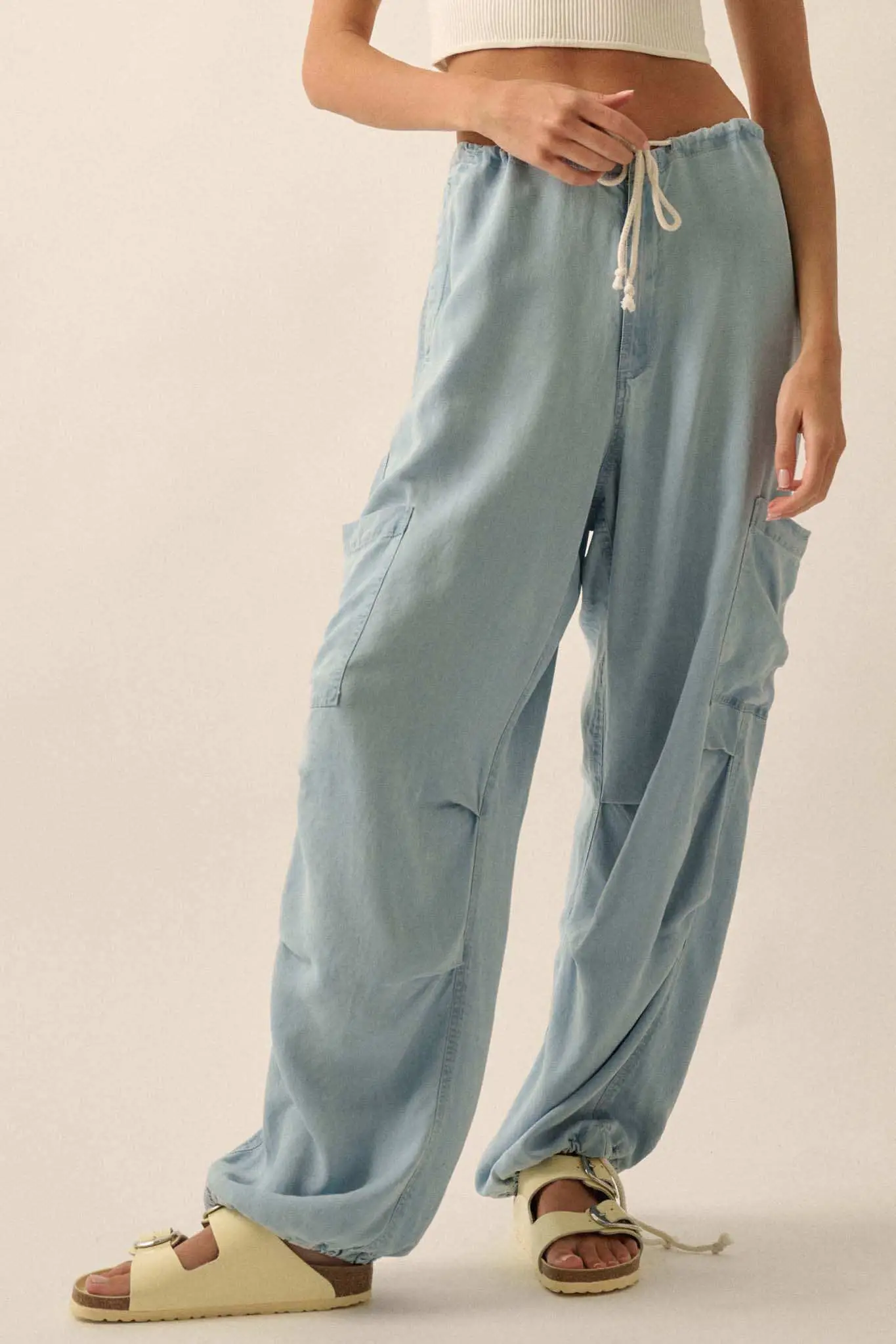 Denim Daze Drawstring Cargo Parachute Pants