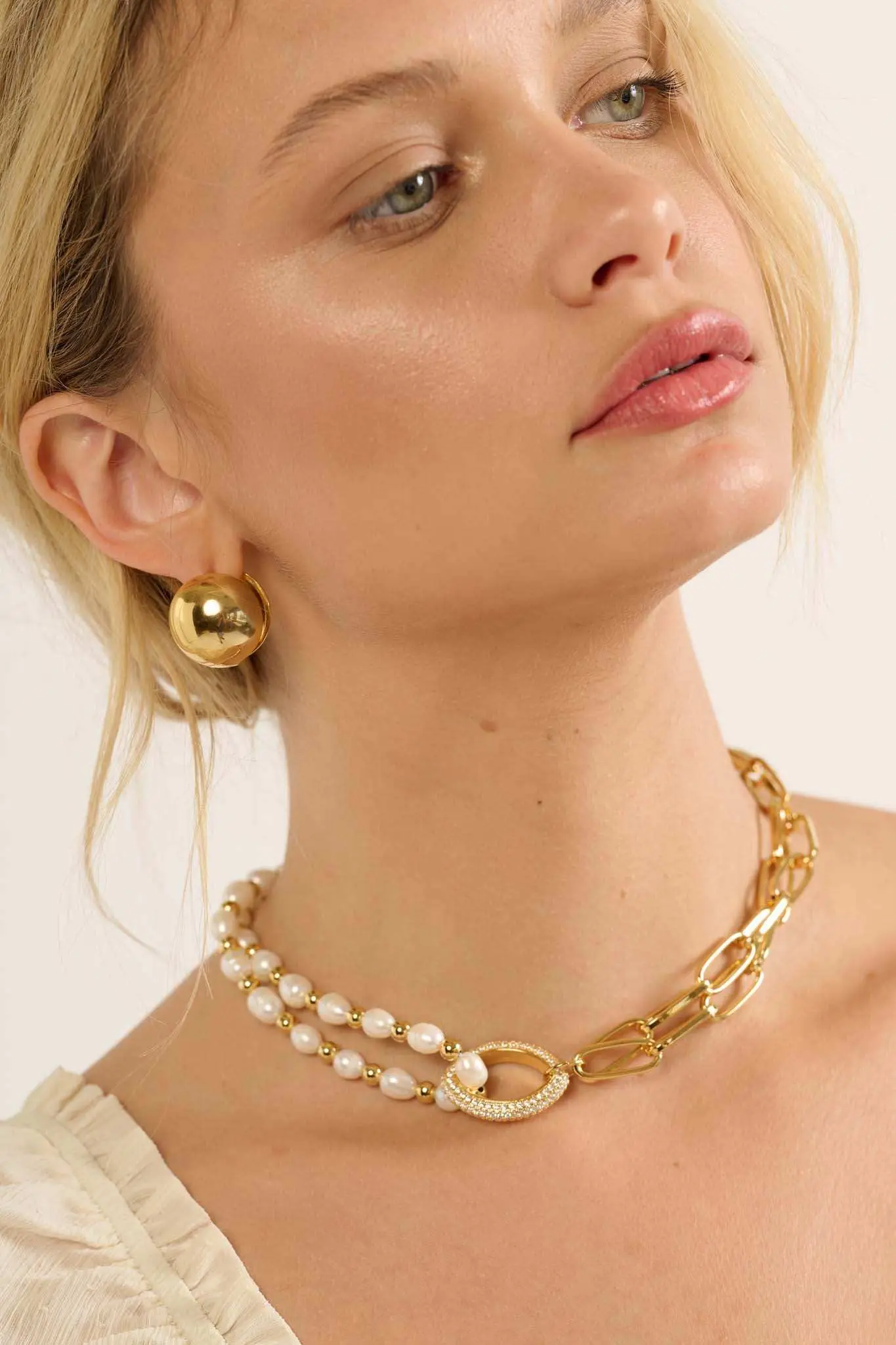 - Pearl and chain choker.