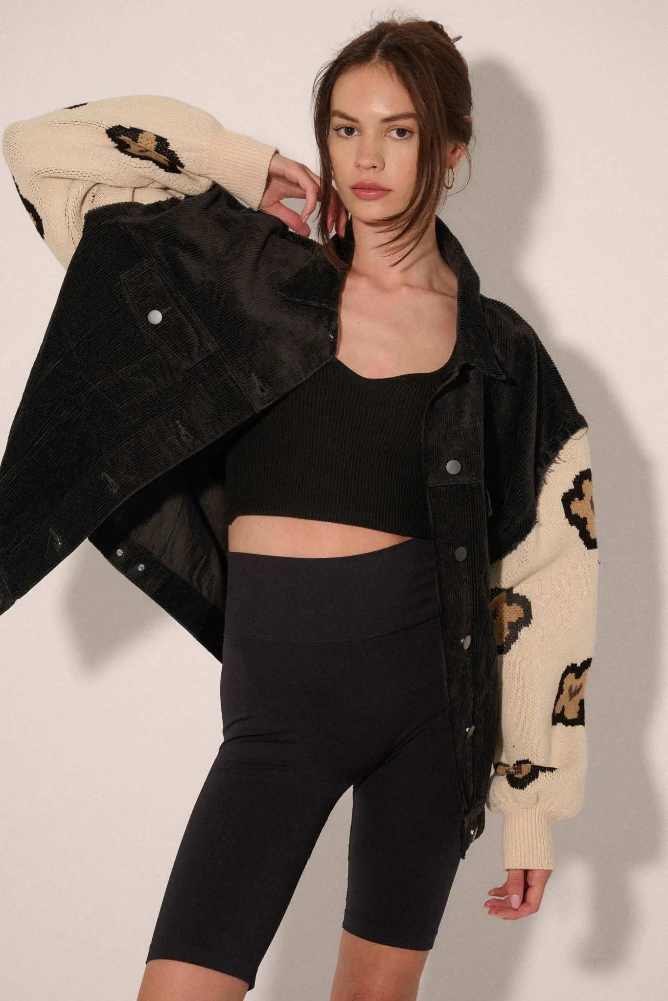 - Mixed media corduroy jacket.