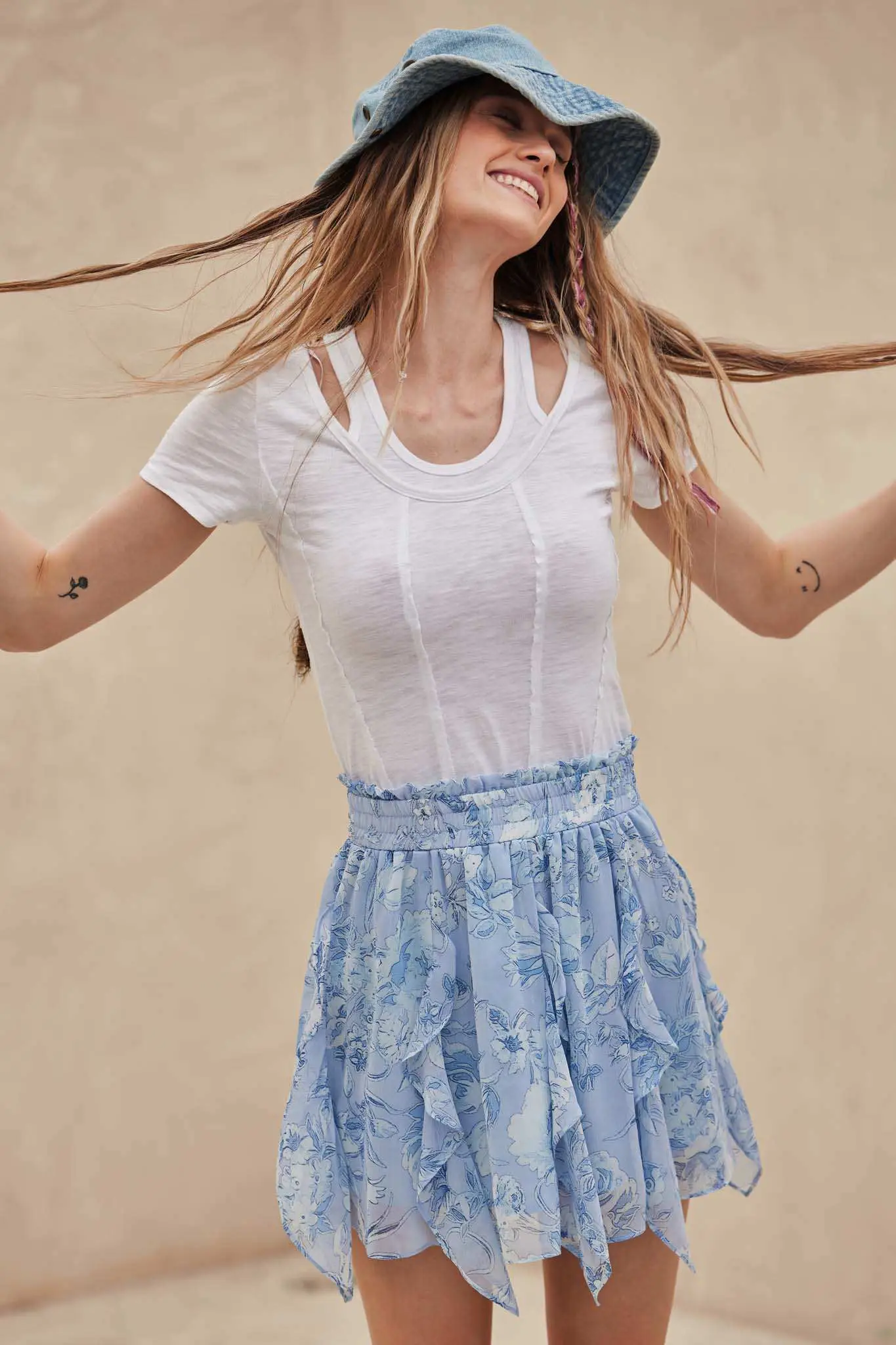 Fresh Fantasy Ruffled Floral Chiffon Mini Skirt