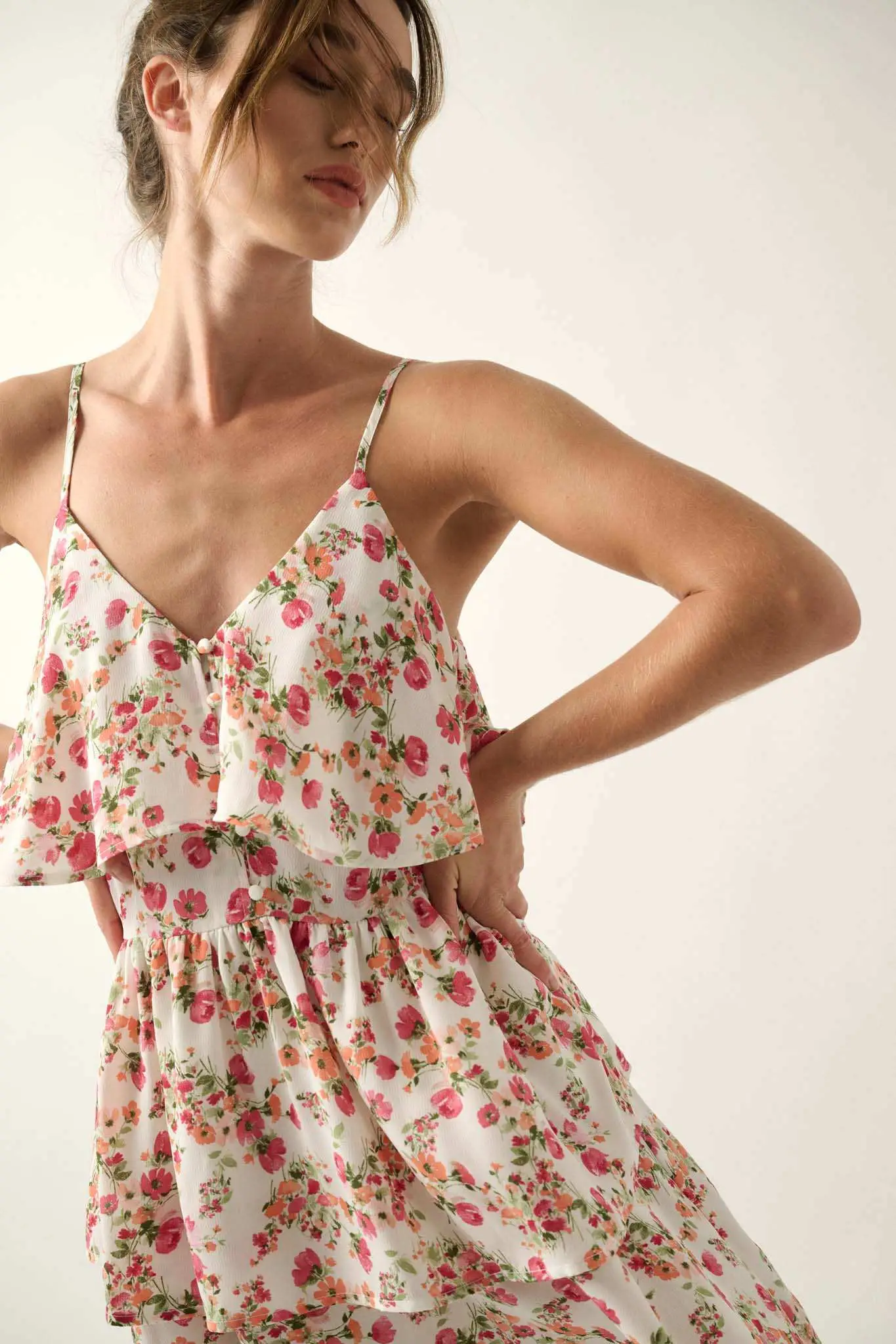 Love Me Lots Floral Tiered Flounce Mini Dress