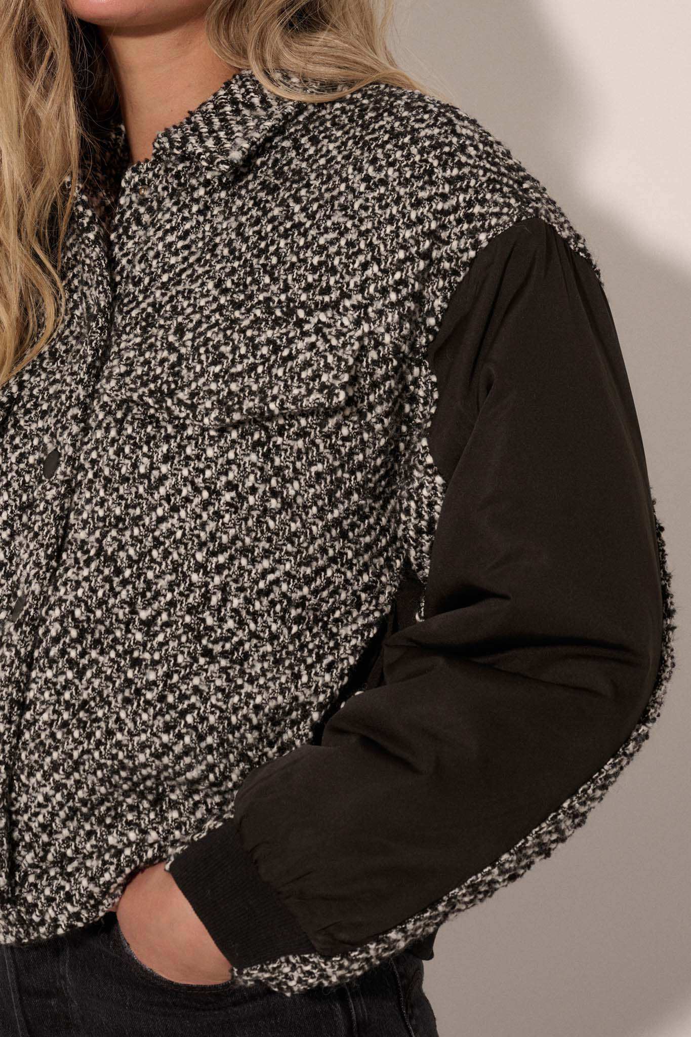 Take the Tweed Mixed Media Trucker Bomber Jacket